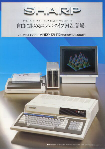 MZ-2000は、一体型です。MZ-2200はセパレート型で、必要なものを一通りそろえる必要があります。2200はカラーで、グラフィックボードも内蔵だったと思いました。が、本体のみでは、ほとんどなにもできませんので、どっちがいいかは使う人次第です。(当時、オイラが知識を持っていたら2200だったんですけどね。兄の購入当時は2200は発売されていなかったのよ。なので、選択の余地無し) |